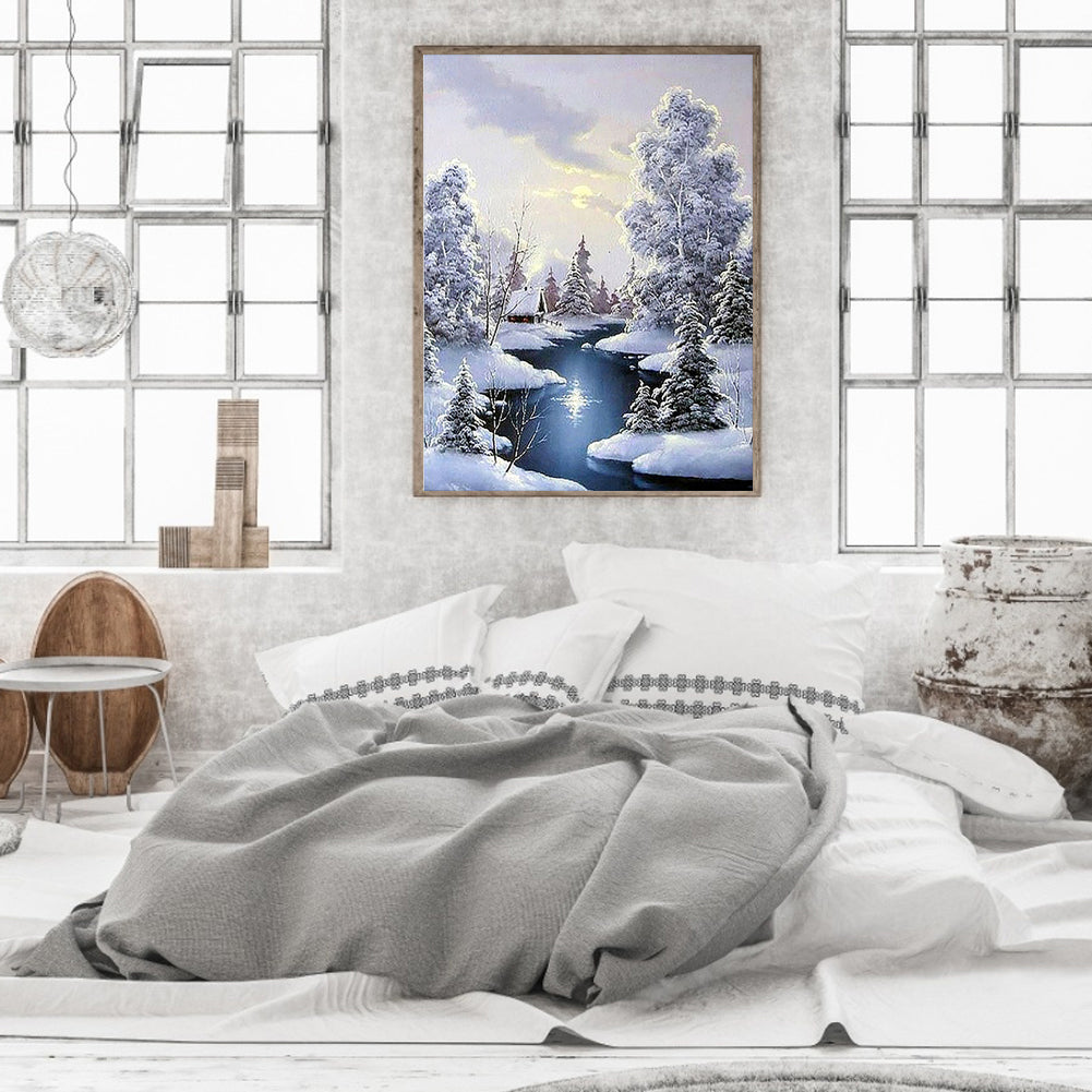 Winter River Snow Scene 30*40CM(Picture) Full Square Drill Diamond Painting