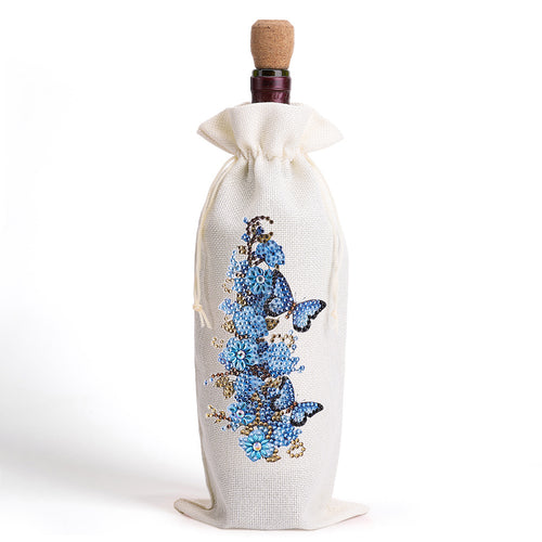 Diamond Painting Burlap Wine Bags Label Liquor Bottle Cover (Butterfly Flower)