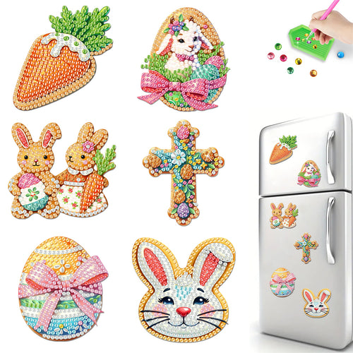 6Pcs Happy Easter Theme DIY Diamond Painting Magnets Kit for Art Crafts Gift