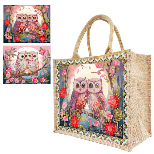 Linen Garden Owl Diamond Art Large Capacity Handbag Birthday Gift for Friends