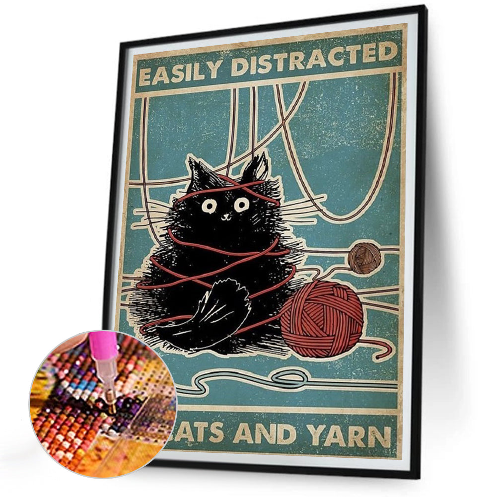 Cat And Yarn Ball Calligraphy 30*40CM(Canvas) Full Round Drill Diamond Painting