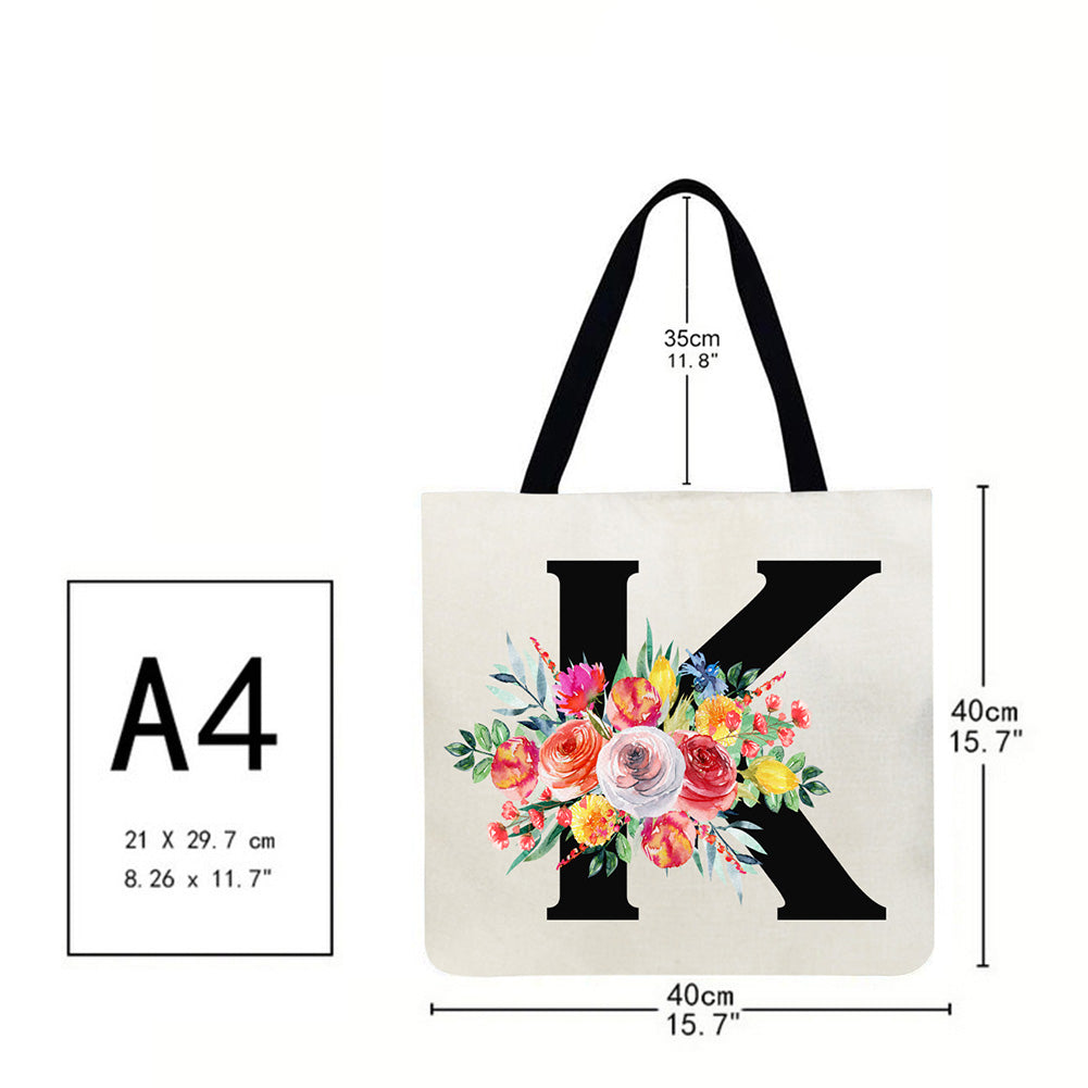 Alphabet flowers Printed Shoulder Shopping Bag Casual Ladies Large Capacity Tote Handbags
