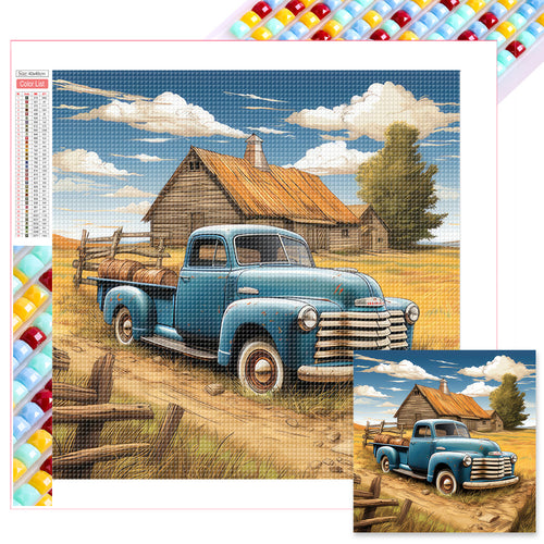 Blue Flower Truck 40*40CM(Canvas) Full Round Drill Diamond Painting