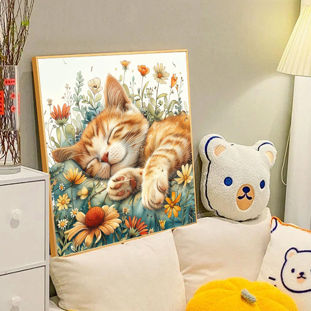 • Load image into Gallery viewer, Orange Cat In Flower Garden 40*40CM(Canvas) Full Round Drill Diamond Painting
