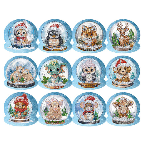 Christmas 12PCS DIY Xmas Critter Diamond Painting Greeting Card Set for Festivals Gifts