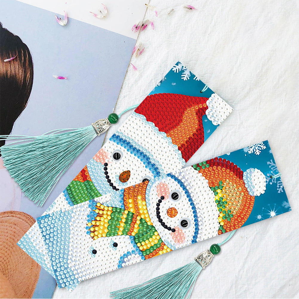 2PCS Diamond Painting Bookmarks Santa Special Shape Diamond Art Bookmarks Pendant Snowman Christmas Diamond Drawing Bookmarks Crystal Painting Bookmark for Adults Kids Home Office School Gift Supplies