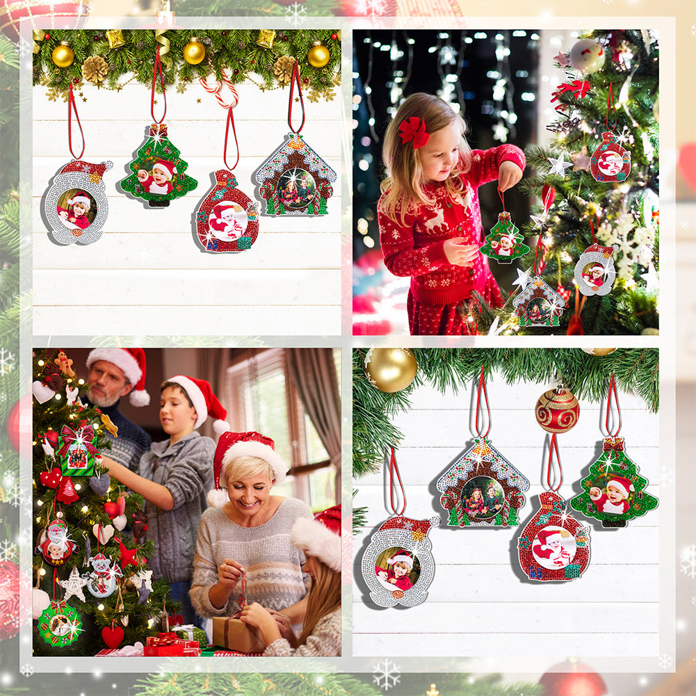 4PCS DIY Picture Frame Ornaments Xmas Tree Christmas Photo Frame Hanging Diamond Painting Xmas Photo Frame Picture Frame Decoration for Kids Holiday Home Decorations Christmas Tree Decoration