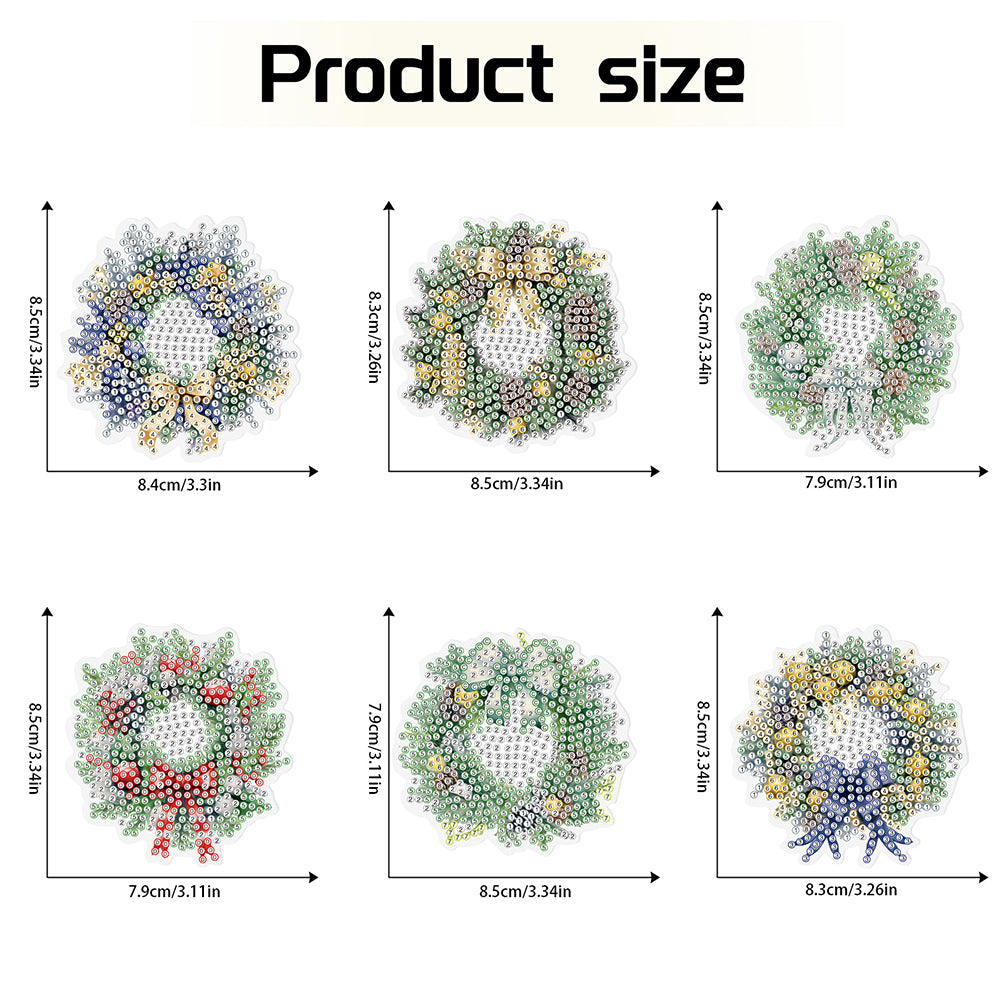 6Pcs Christmas Wreath Fridge Stickers Diamond Painting Art Magnets Decals