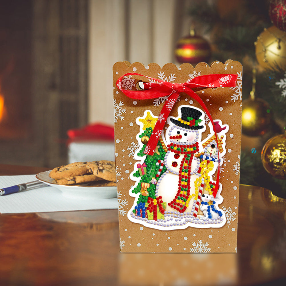 3. Festive Decorations: Adorned with delightful Christmas-themed decorations such as Santa Claus, Christmas trees, and snowmen, this diamond art gift bag radiates a strong holiday spirit. Its festive design makes it a perfect addition to your holiday decor.