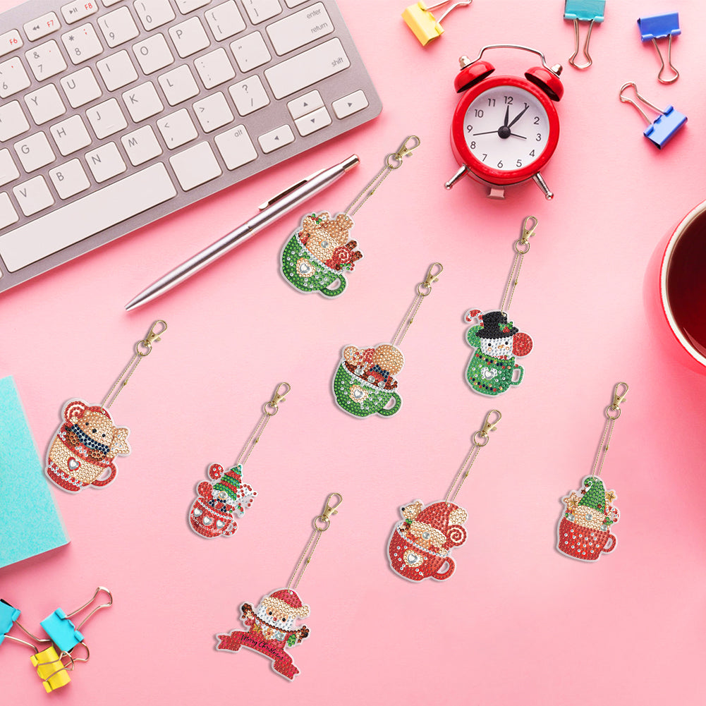 4. Christmas Teacup Theme: These diamond painting keychains feature charming teacup designs, perfect for adding a festive touch to your Christmas celebrations. Attach them to your keys or bags to bring a delightful and whimsical charm to your accessories.