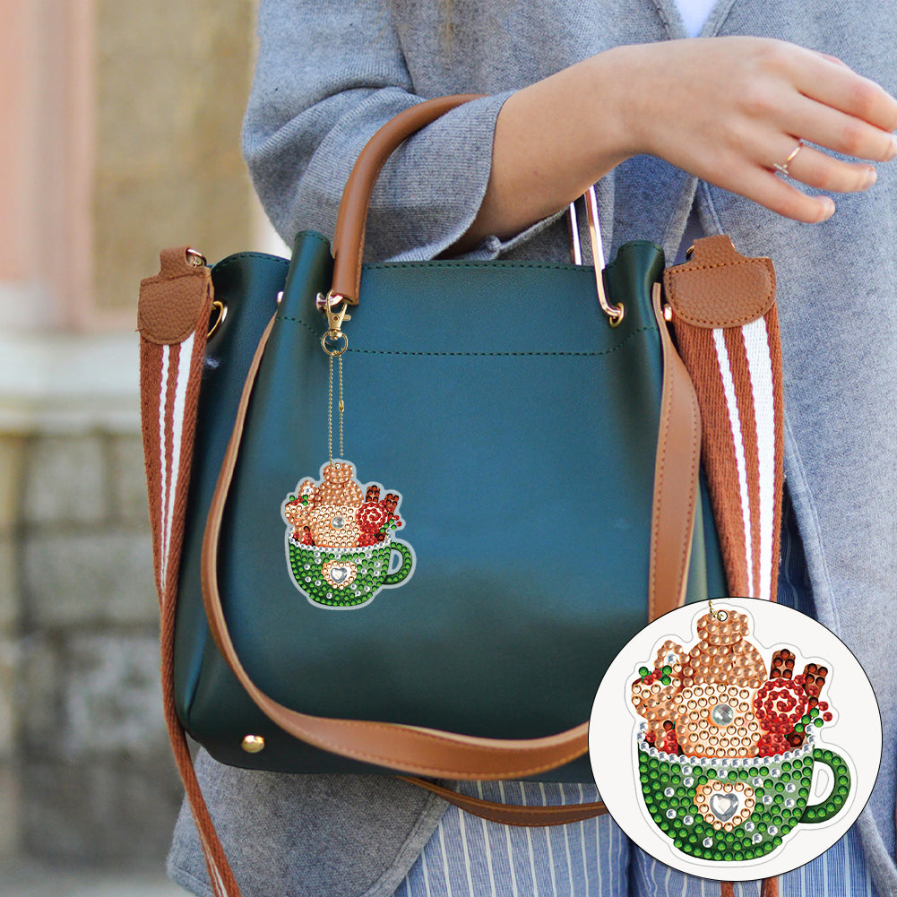 8PCS Diamond Painting Keychains Double-Sided Diamond Art Keychains Pendant Tea Cup Rhinestone Painting Pendant Ornament Diamond Painting Art Ornaments for Beginners Birthday Crafting Home Party Decor