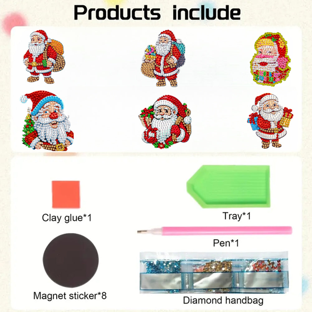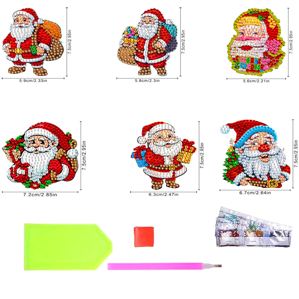 Christmas 6Pcs Acrylic Santa Claus Diamond Painting Fridge Stickers for Fridge Whiteboards
