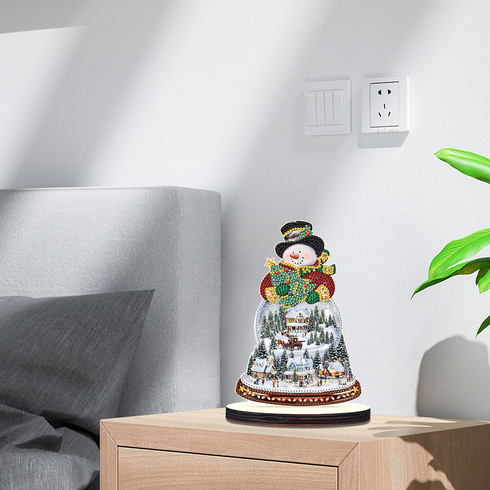 Wooden Desktop Diamond Painting Ornament Xmas Snowman Table Top Diamond Painting Decor Crystal Painting Desktop Kit Diamond Painting Desktop Decor for Home Office Desktop Decor