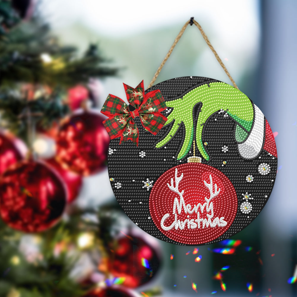 Christmas Diamond Painting Hanging Pendant Merry Christmas Wooden Crystal Hanging Home Wall Decor Welcome Colour Ball Diamond Painting Art Hanging Ornament Kits for Adult Party Christmas Holiday Decor