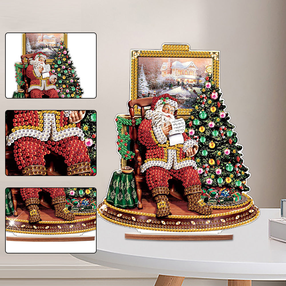Wooden Diamond Painting Tabletop Ornaments Kit Santa Table Top Diamond Painting Ornament Kits Diamond Painting Desktop Ornaments Kit for Xmas Table Office Home Decoration