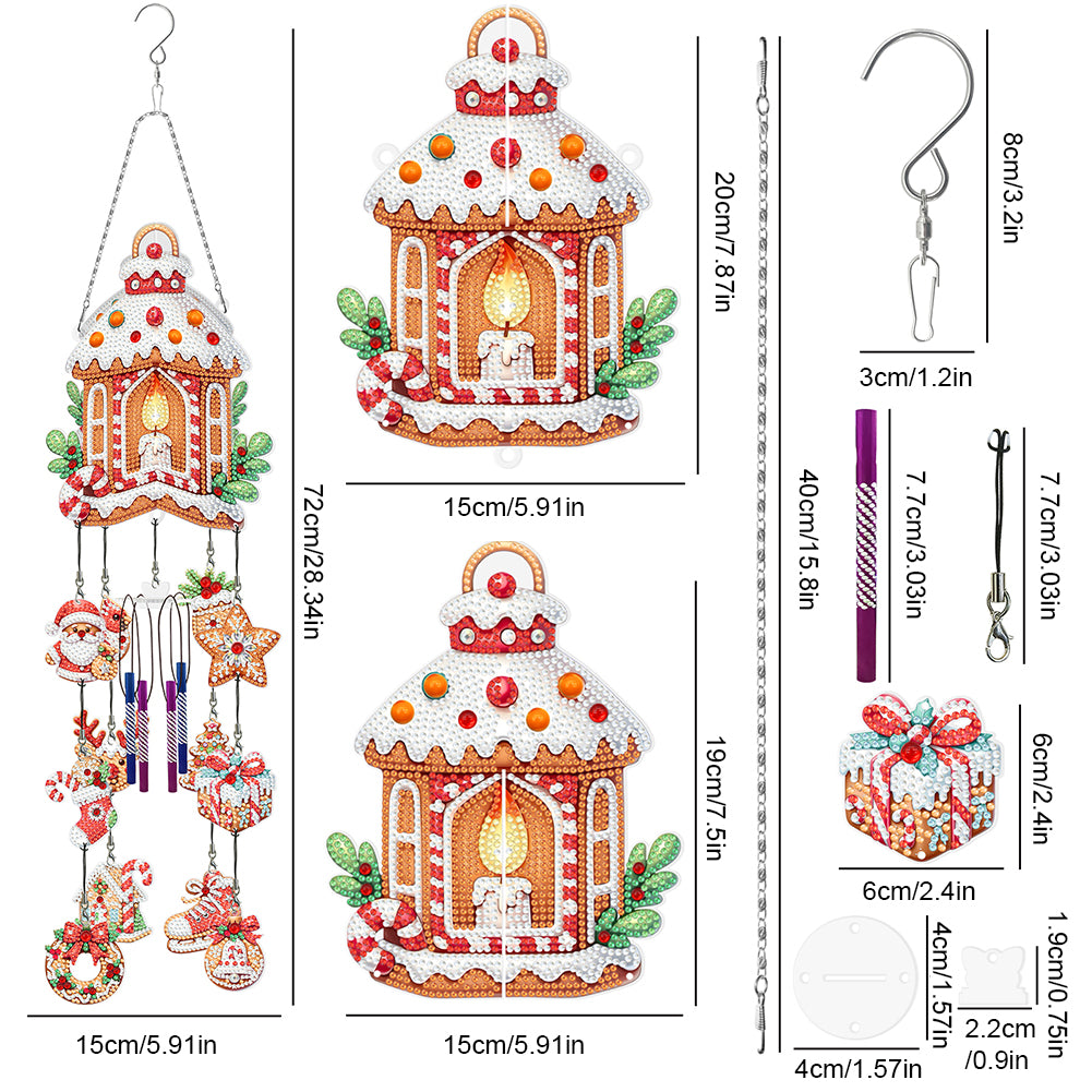 Double-Sided Diamond Painting Wind Chime Xmas Print for Christmas Wall Decor