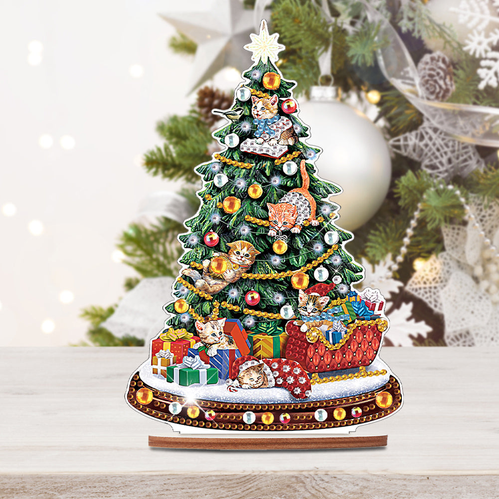 Wooden Diamonds Painting Desktop Decorations Christmas Table Top Diamond Painting Ornament Kits Diamond Painting Desktop Ornaments Kit for Xmas Table Office Home Decoration
