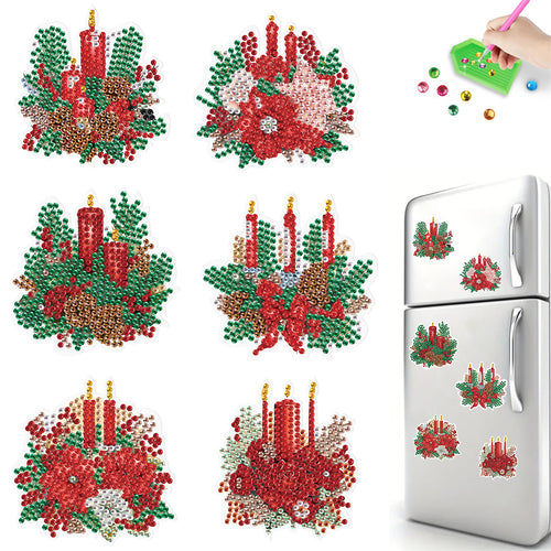 6Pcs Christmas Candle Fridge Stickers Diamond Painting Art Magnets Decals