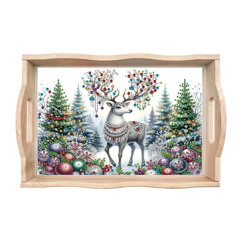 Christmas Diamond Painting Wooden Serving Tray Home Decoration (Green Elk)