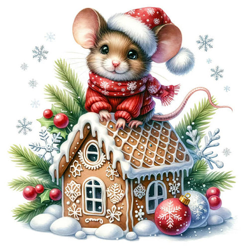 Cookie Christmas Mouse 40*40CM(Canvas) Full Round Drill Diamond Painting