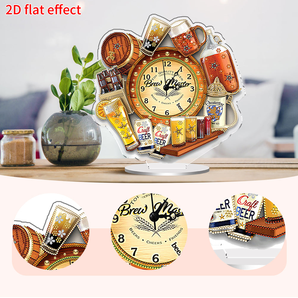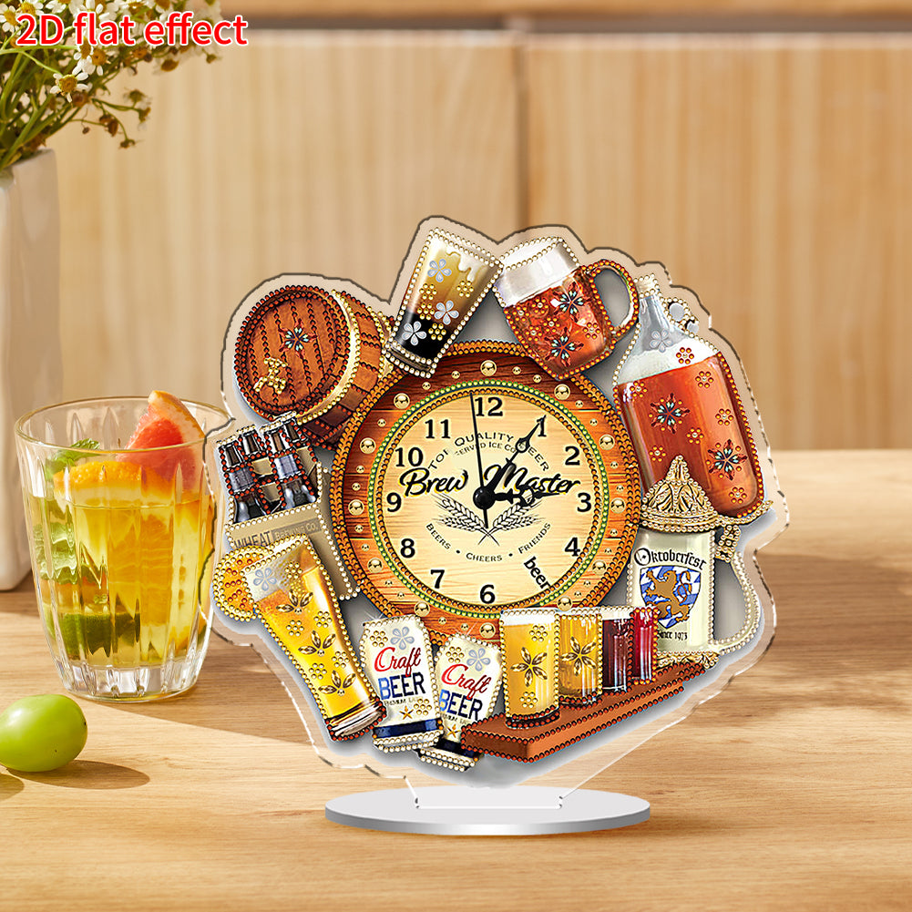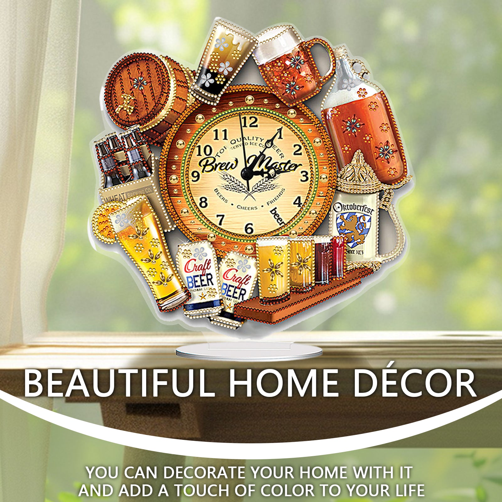 Acrylic Special Shaped Beer 5D Diamond Painting Clock for Living Room Decor