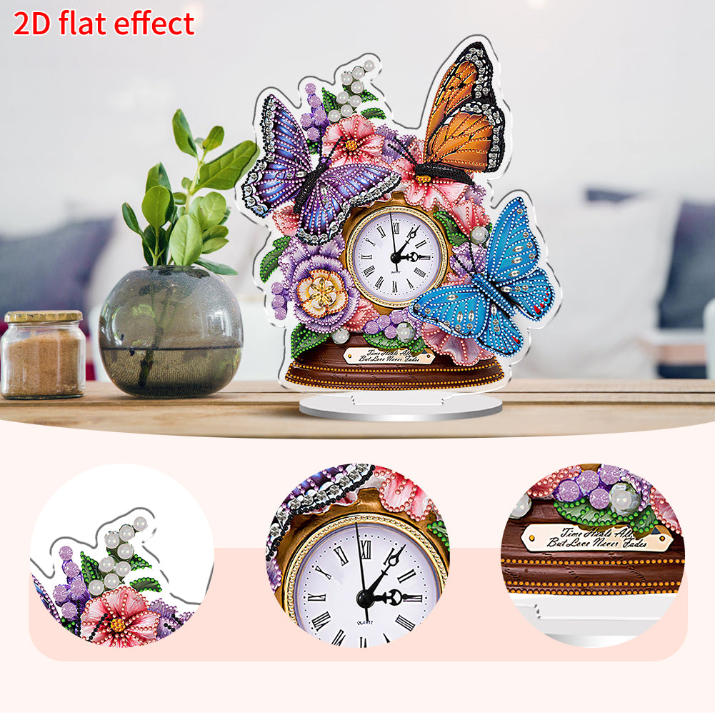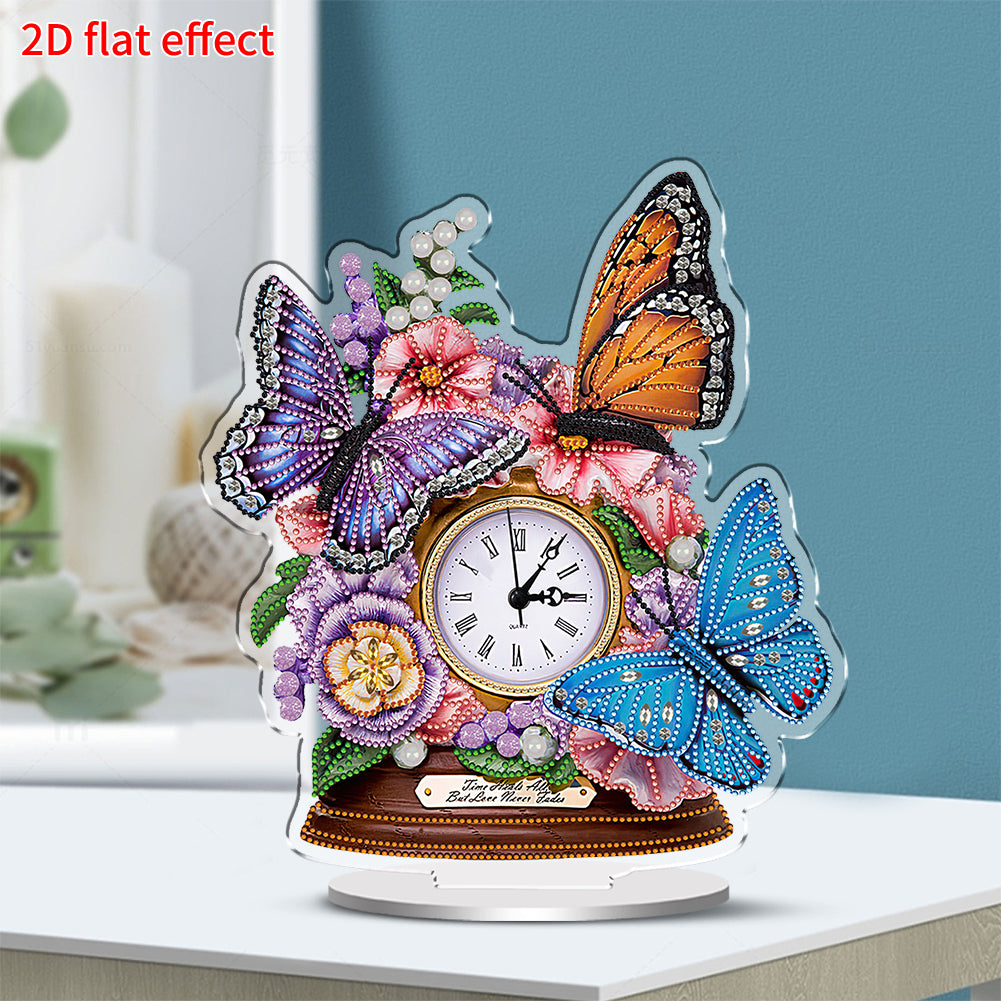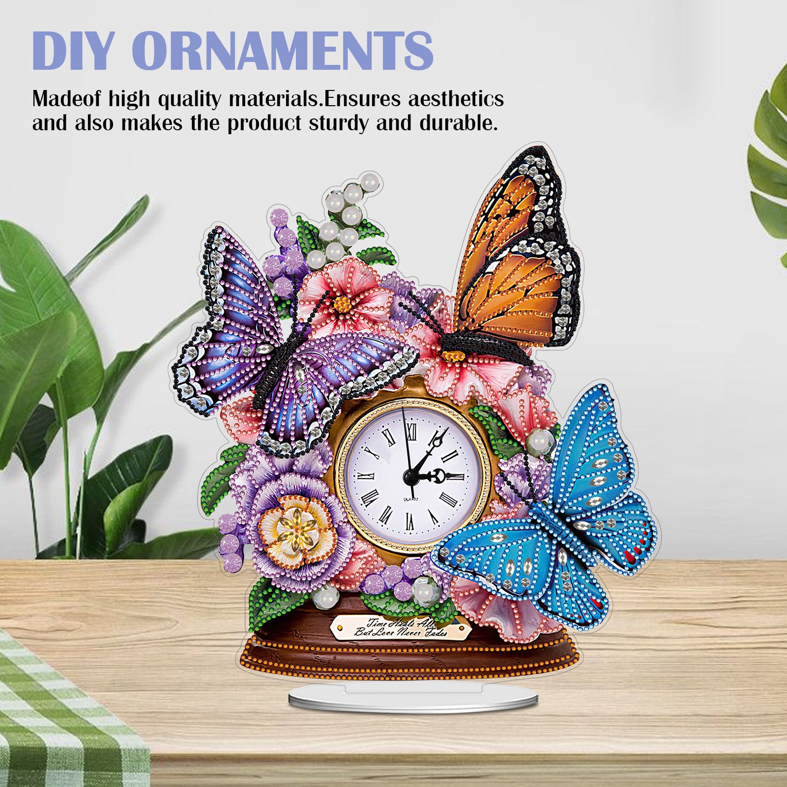 Acrylic Special Shaped Flower Butterfly 5D Diamond Painting Clock Art Craft