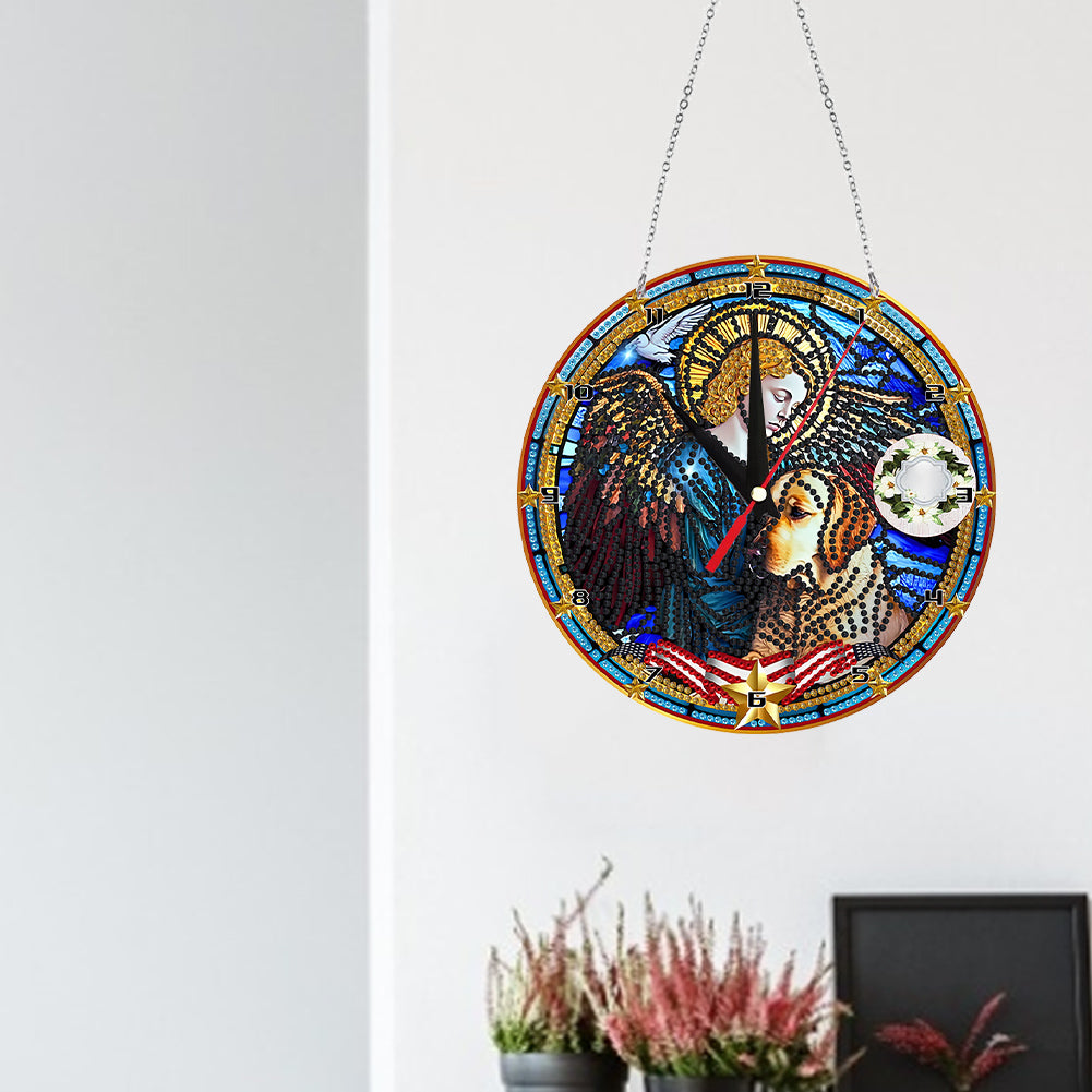 DIY Art Mosaic Rhinestone Wall Clocks Kit Acrylic Sticky Mosaic Clock Diamond Painting Kit Dog Pattern Clock for Kids and Adults