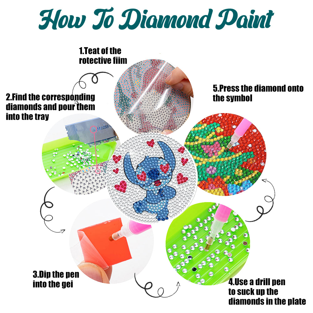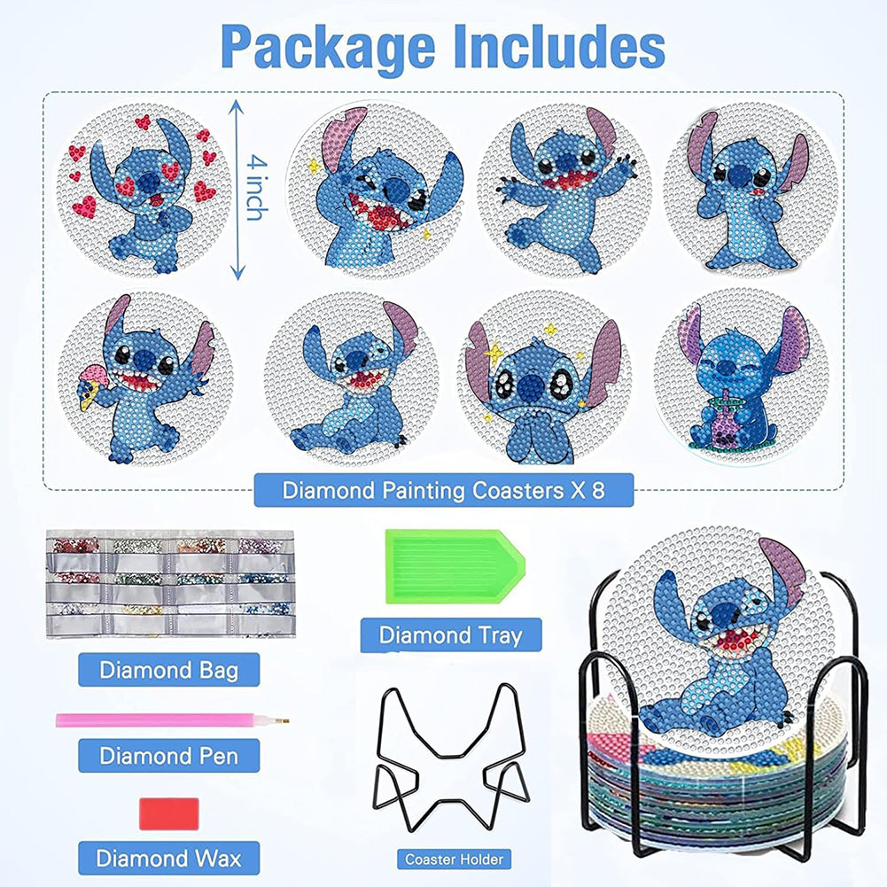 8 Pcs Stitch Diamond Art Coasters With Holder Diamond Art Painting Coasters Kits