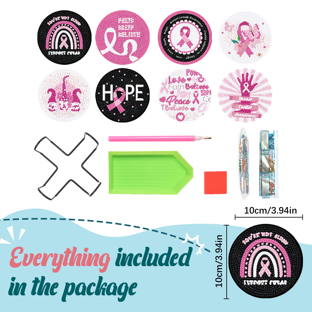 8PCS Diamond Painting Art Coaster Kit Simple Element Round Diamond Painting DIY Coaster Halloween Gnome Diamond Painting Crafts Coaster Pink Gnome Rainbow Symbol for Adults Kids Beginner Gift Supplies