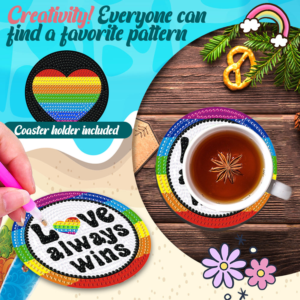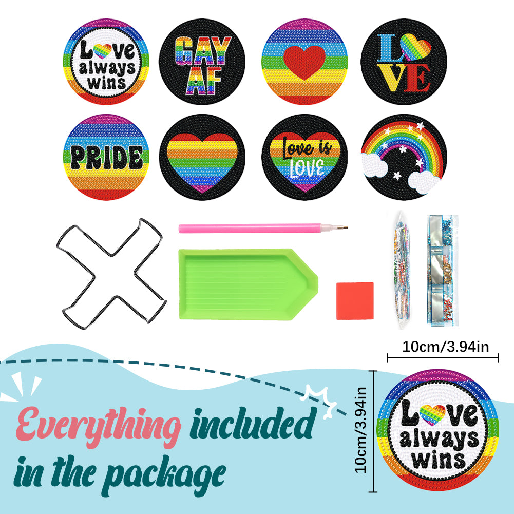8PCS Acrylic Round Diamond Painting Coasters Kits (Rainbow Symbol)