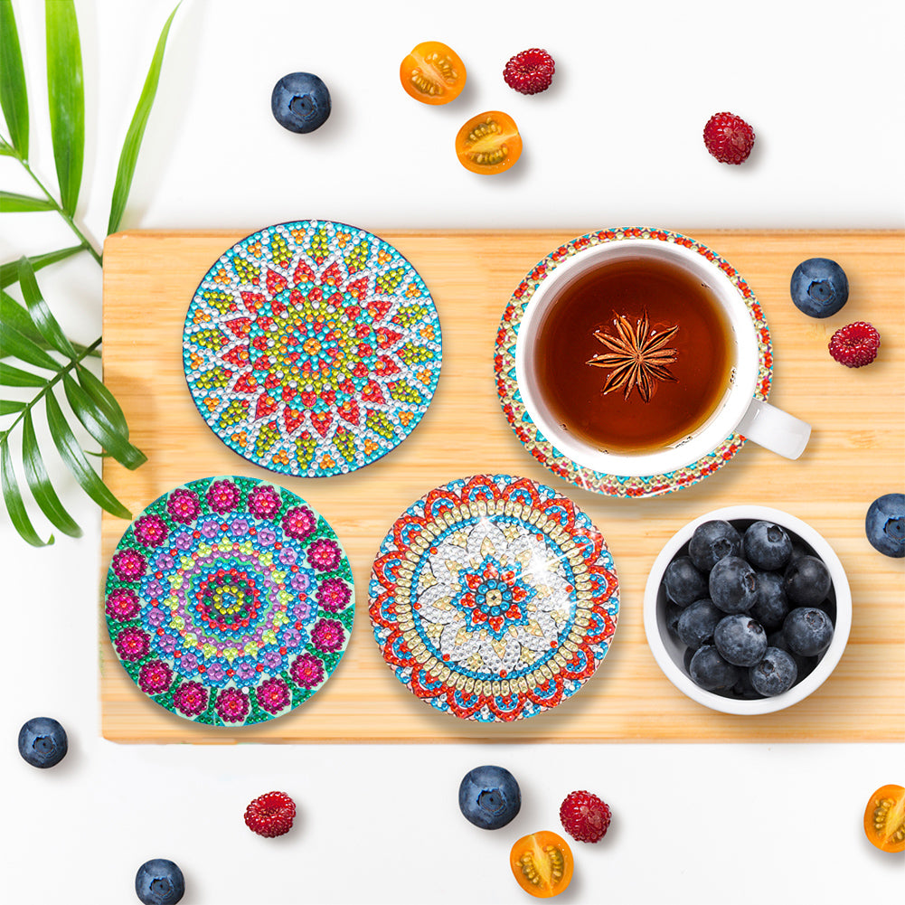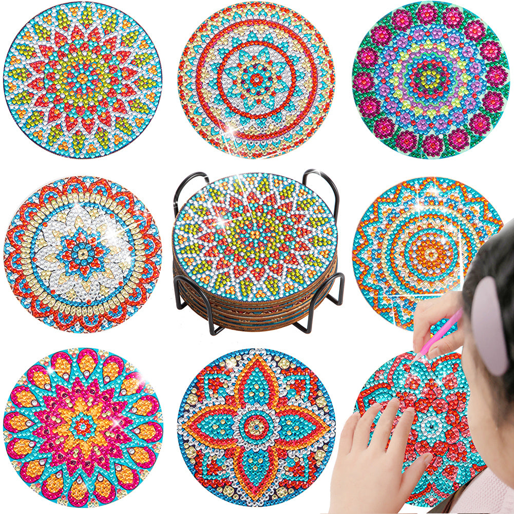 DIY Diamond Painting Coasters Kit Stackable Wood/Acrylic Diamond Art Coasters Marine Life with Holder Crystal Drink Coasters Sunflower Gnome Anti Slip Coasters for Tabletop Protection