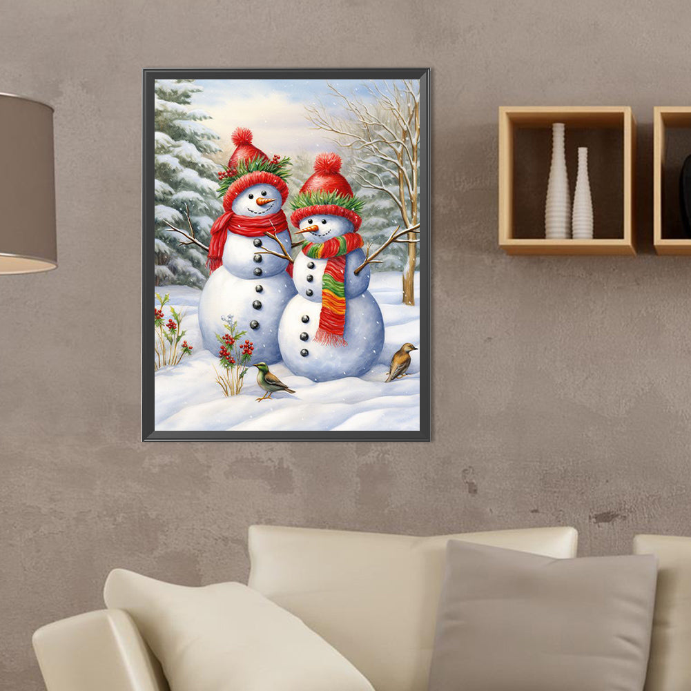 Two Snowmen 30*40CM(Canvas) Full Round Drill Diamond Painting
