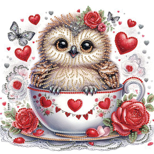 Little Owl In A Heart And Coffee Cup 30*30CM(Canvas) Partial Special Shaped Drill Diamond Painting