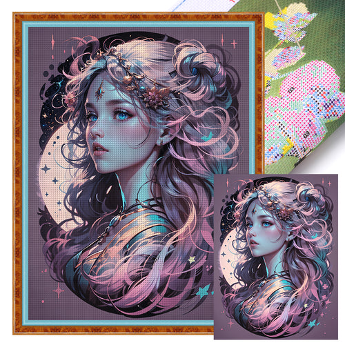 Huancan - Girl With Purple Hair - 45*60CM 11CT 3 Stamped Cross Stitch