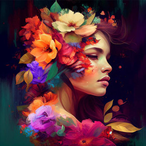 Yishu - Girl With Flowers - 50*50CM 11CT 3 Stamped Cross Stitch