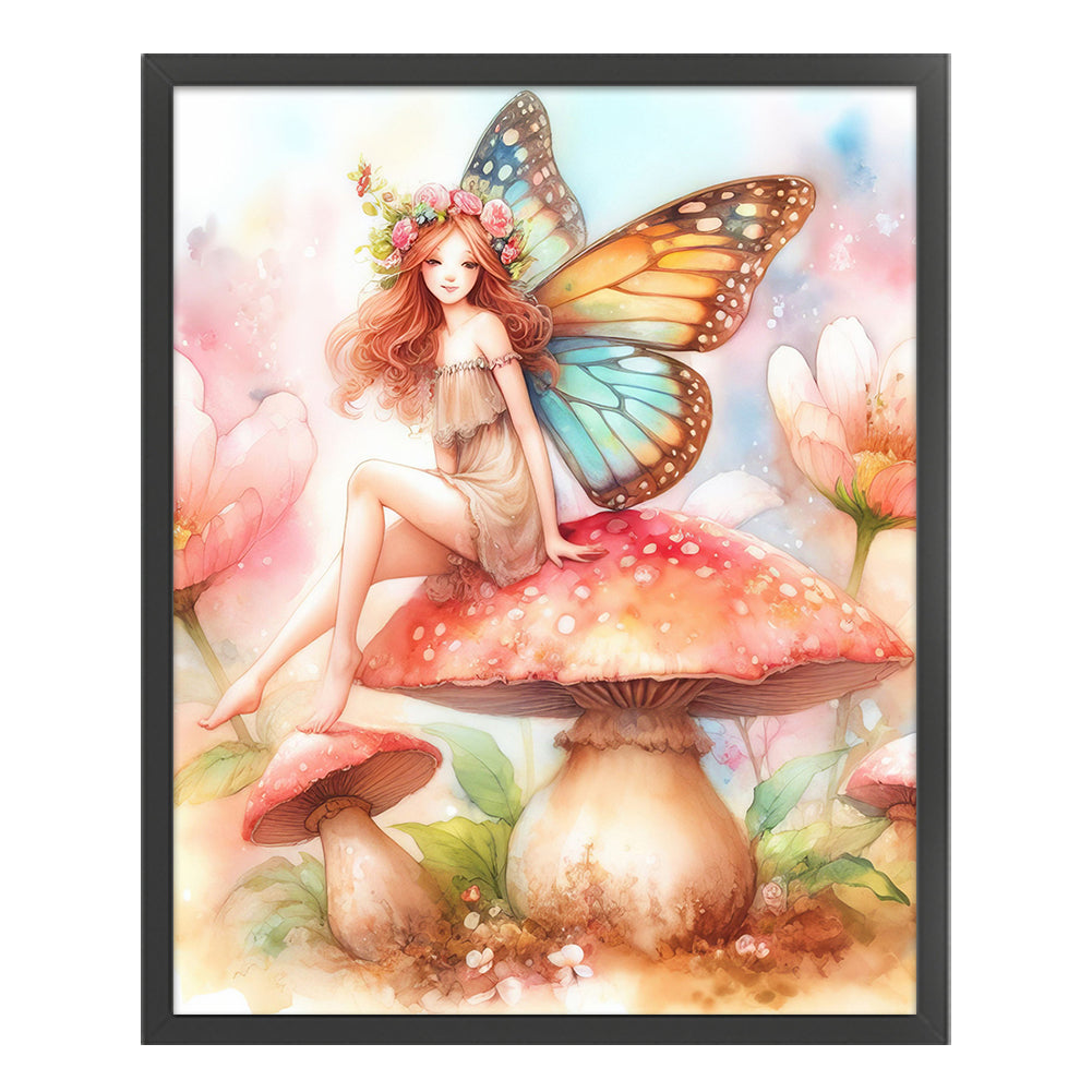 Huancan - Butterfly Fairy On The Mushroom - 50*60CM 11CT 3 Stamped Cross Stitch
