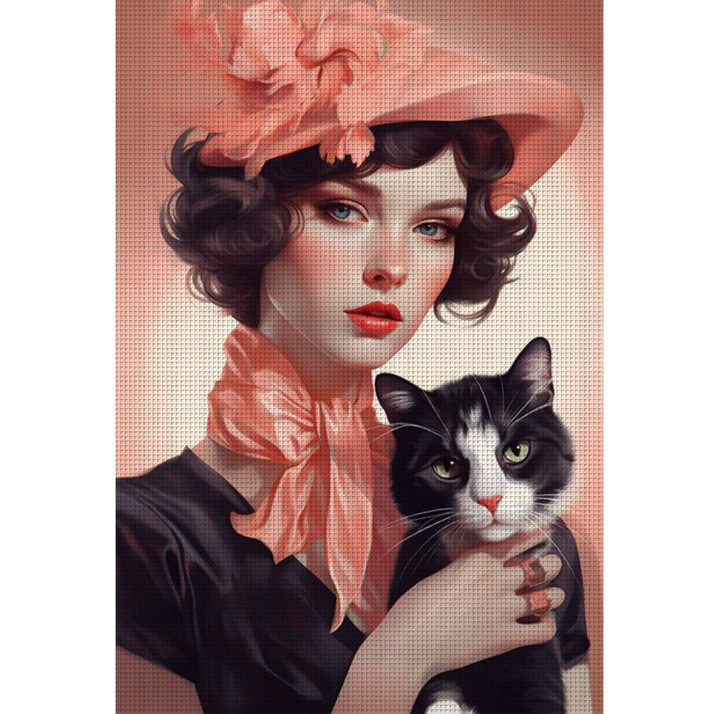 Huancan - Cat And Lady - 40*60CM 11CT 3 Stamped Cross Stitch