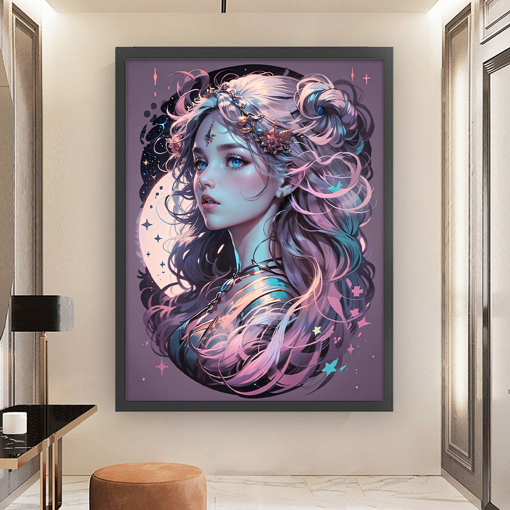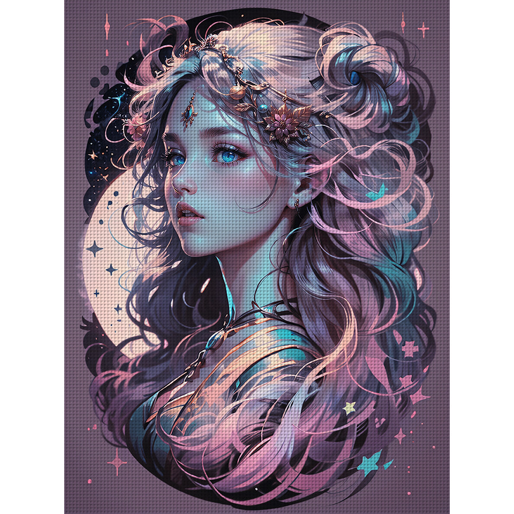 Huancan - Girl With Purple Hair - 45*60CM 11CT 3 Stamped Cross Stitch