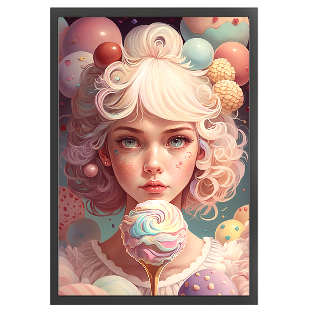 Huancan - Rainbow Ice Cream Girl - 45*65CM 11CT 3 Stamped Cross Stitch
