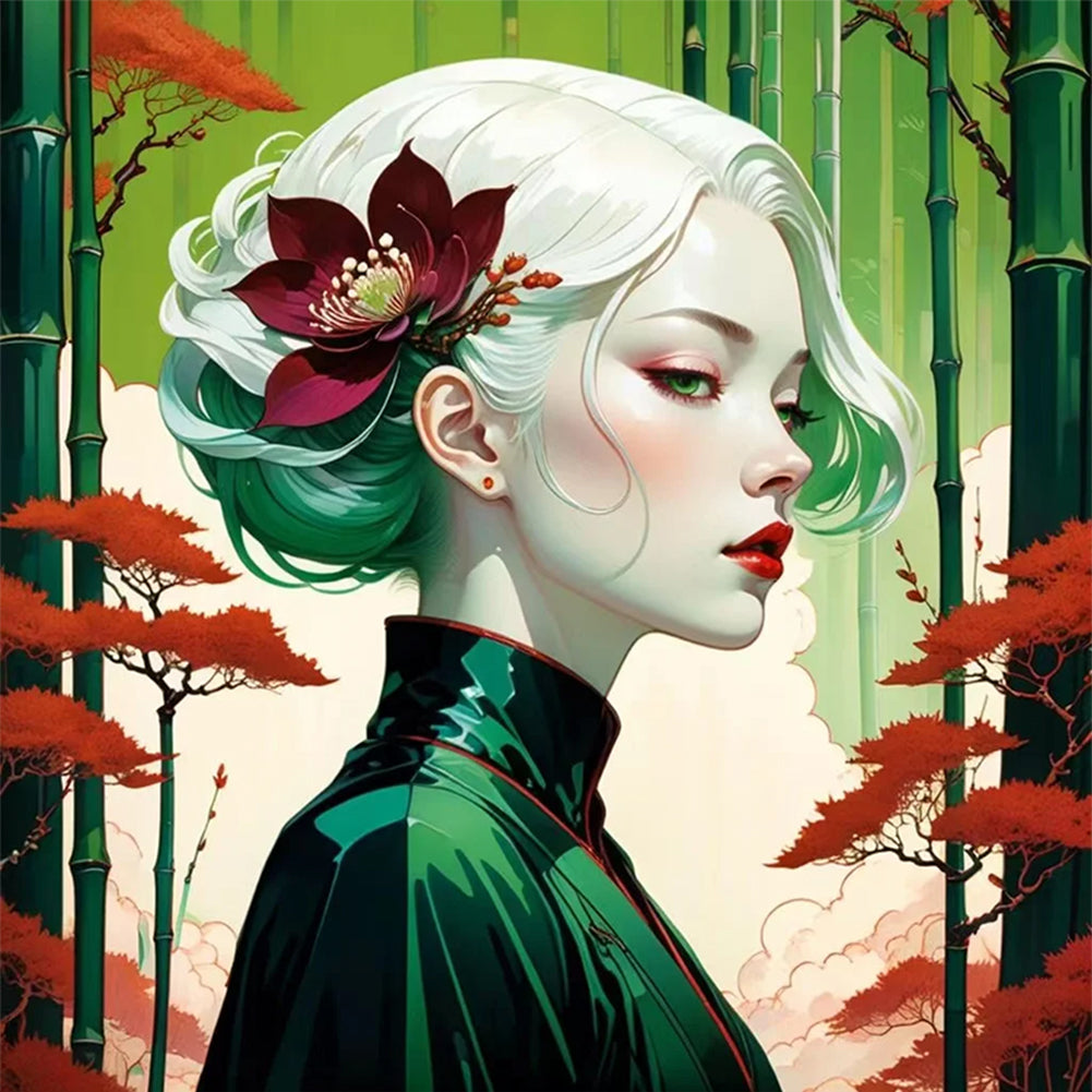 Huancan - Silver-Haired Girl - 40*40CM 14CT 2 Stamped Cross Stitch