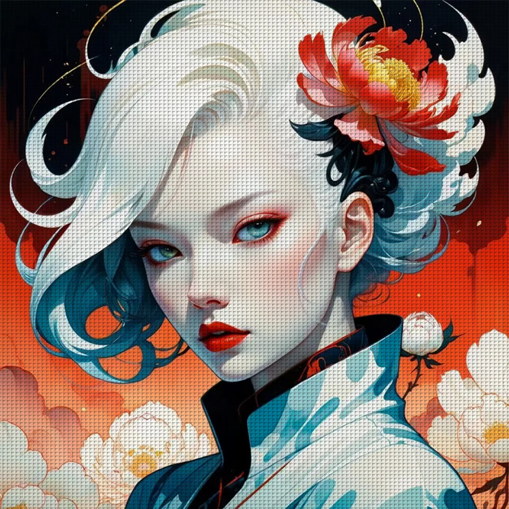 Huancan - Silver-Haired Girl - 40*40CM 14CT 2 Stamped Cross Stitch
