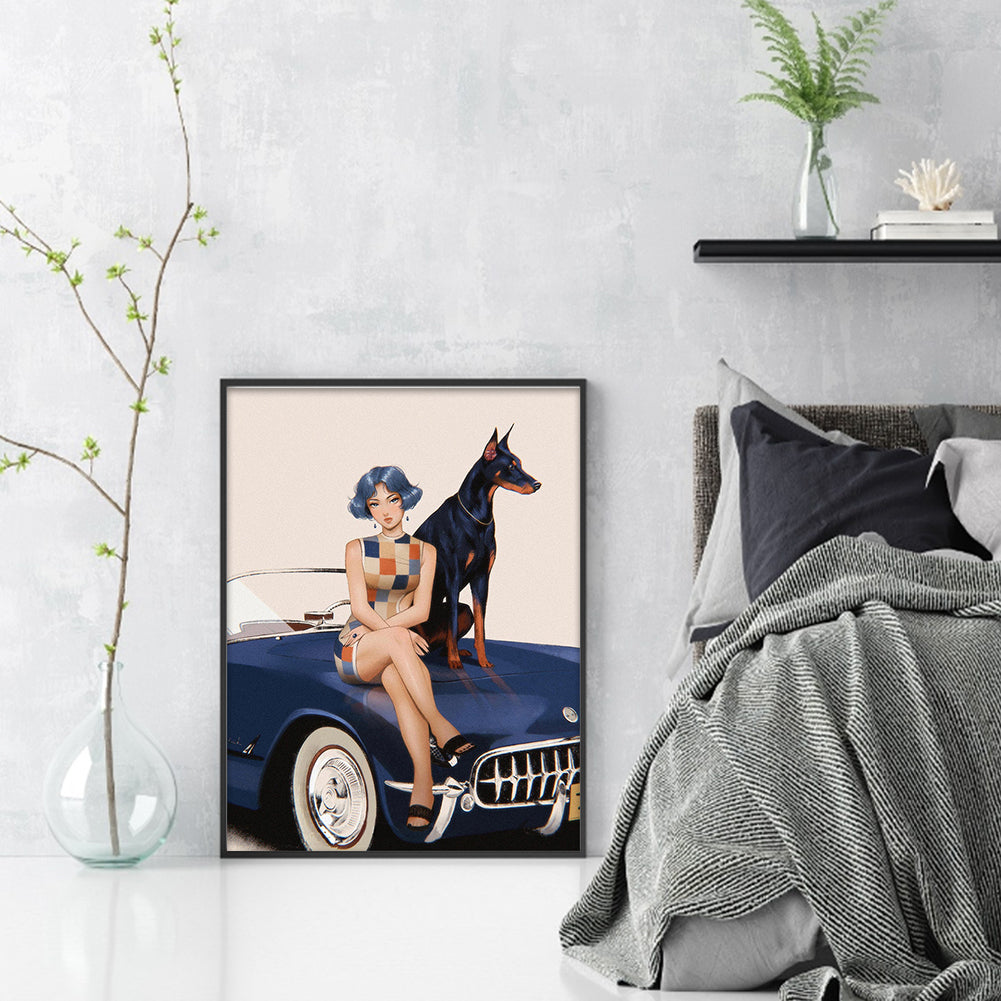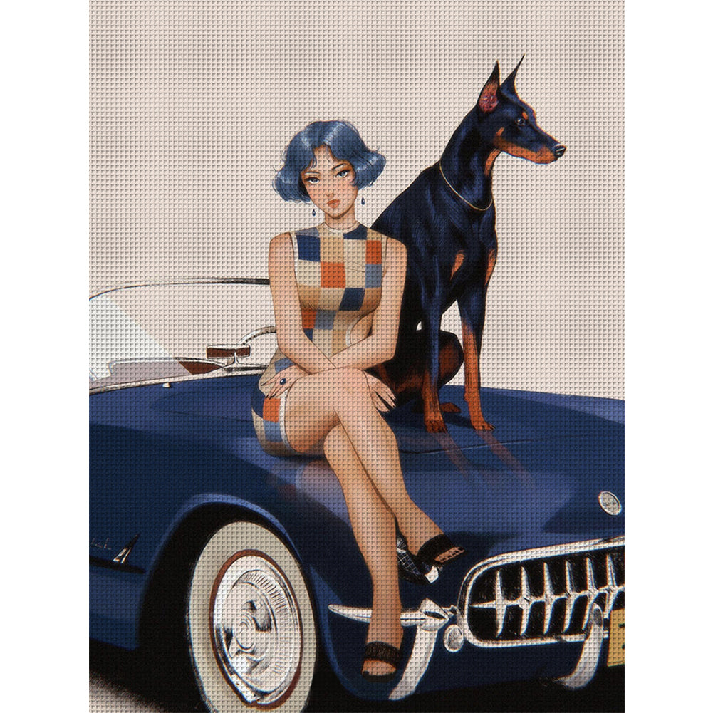 Yishu - Beautiful Woman In A Car - 40*56CM 11CT 3 Stamped Cross Stitch