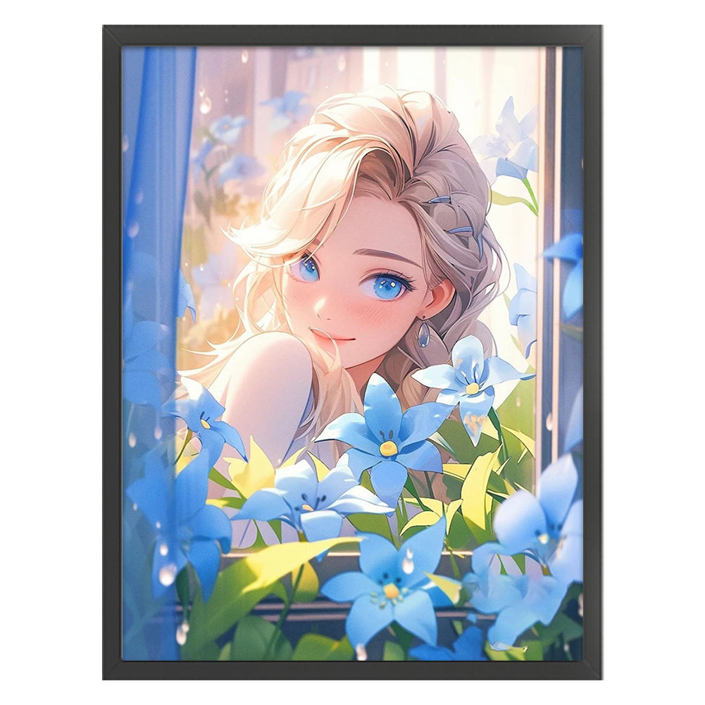 Yishu - Girl And Flowers By The Window - 50*65CM 11CT 3 Stamped Cross Stitch