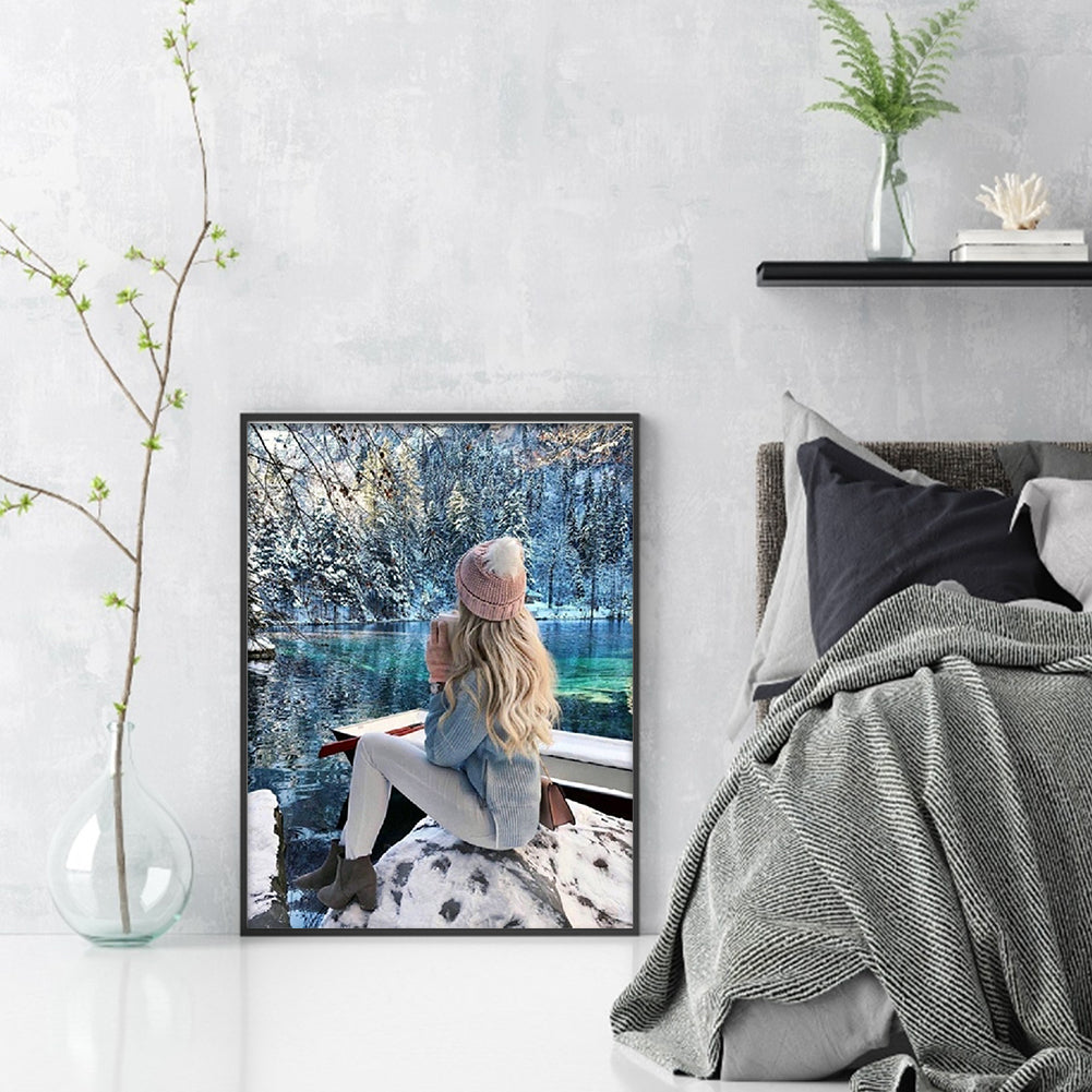 Yishu - Girl In A Snowy Scene - 40*56CM 11CT 3 Stamped Cross Stitch
