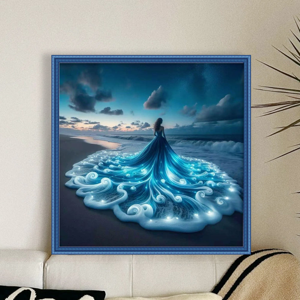 Yishu - Girl With A Glowing Skirt - 40*40CM 11CT 3 Stamped Cross Stitch
