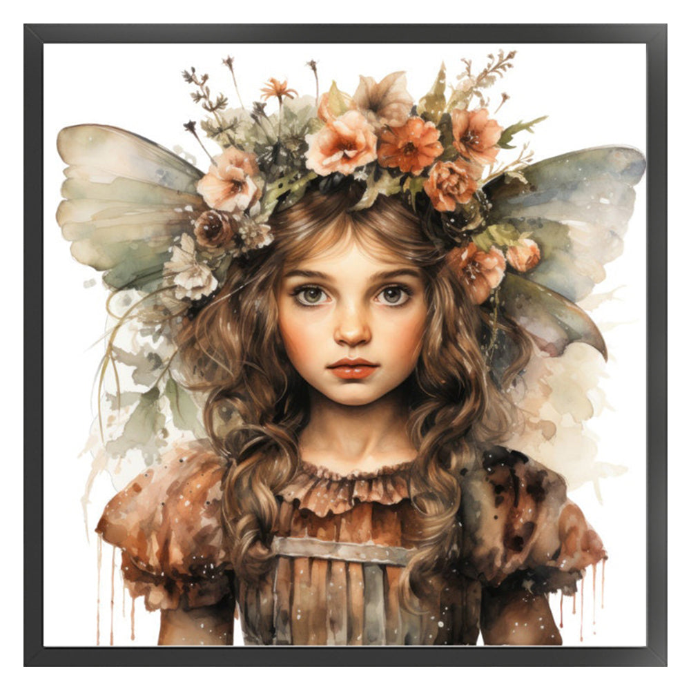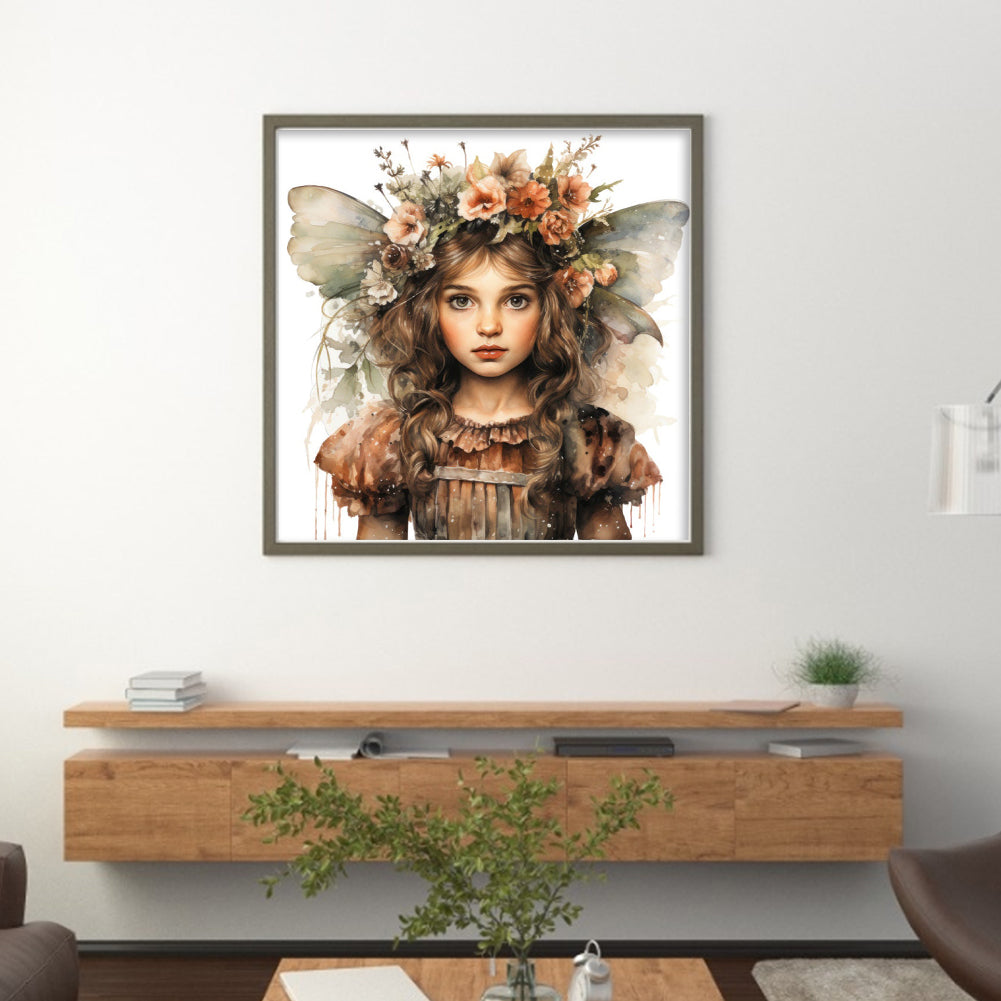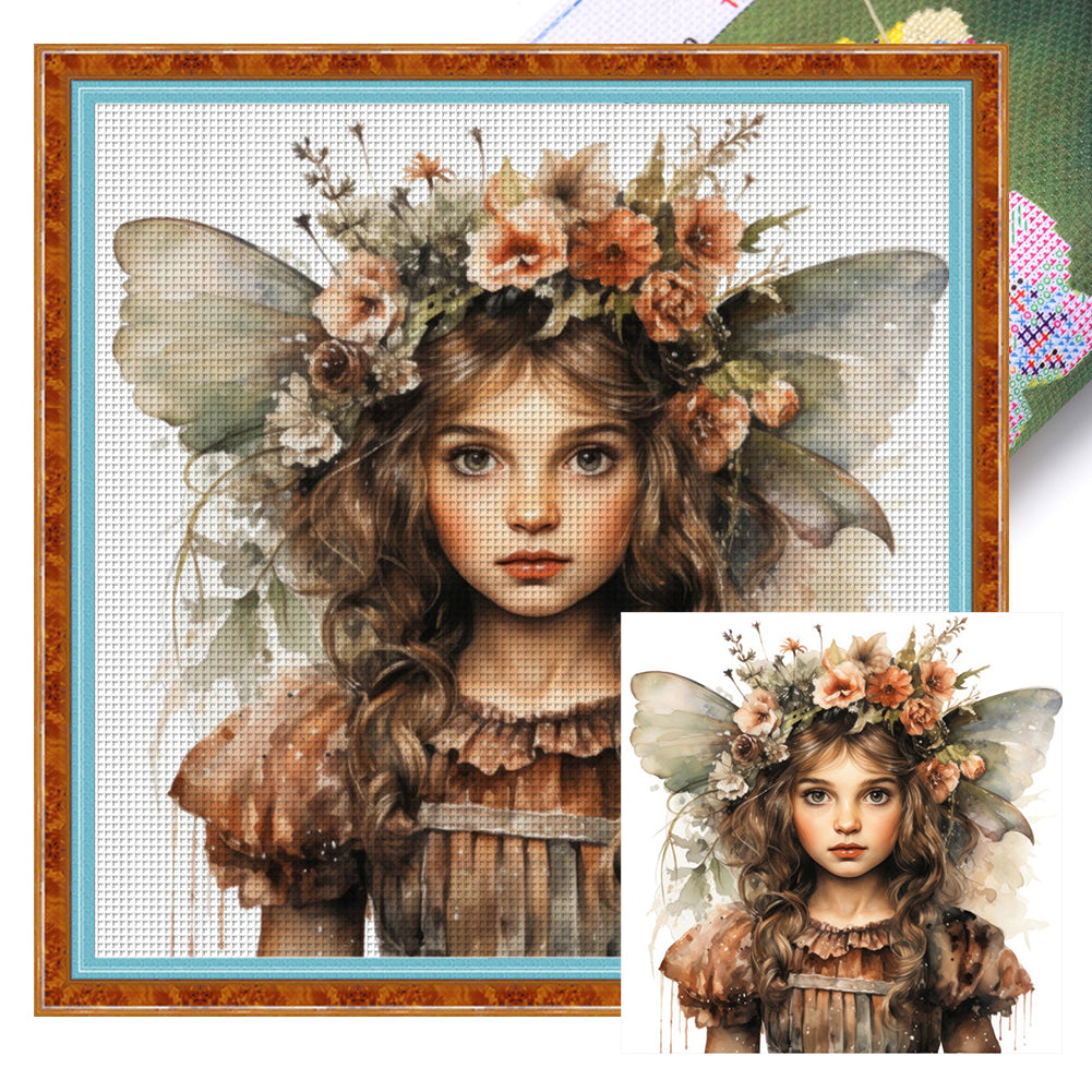 Yishu - Girl With Flowers And Butterflies - 50*50CM 11CT 3 Stamped Cross Stitch