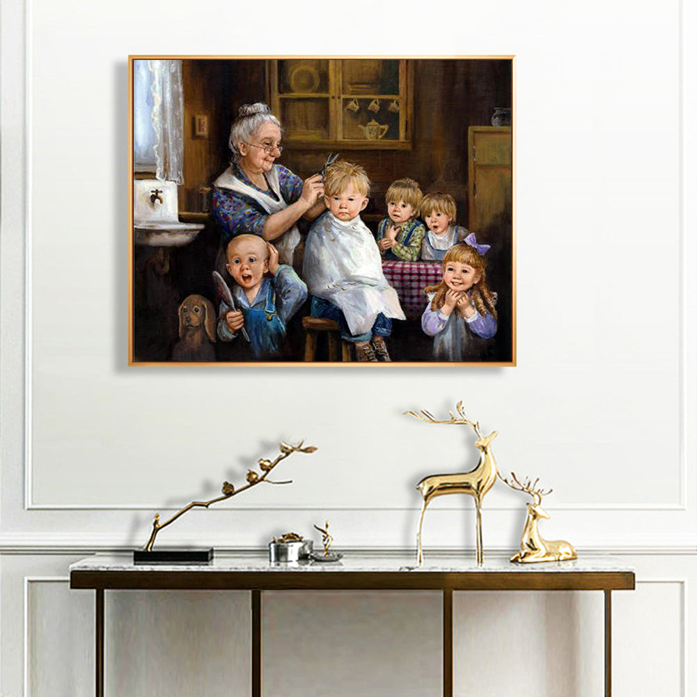 Yishu - Grandma And Child - 60*47CM 11CT 3 Stamped Cross Stitch