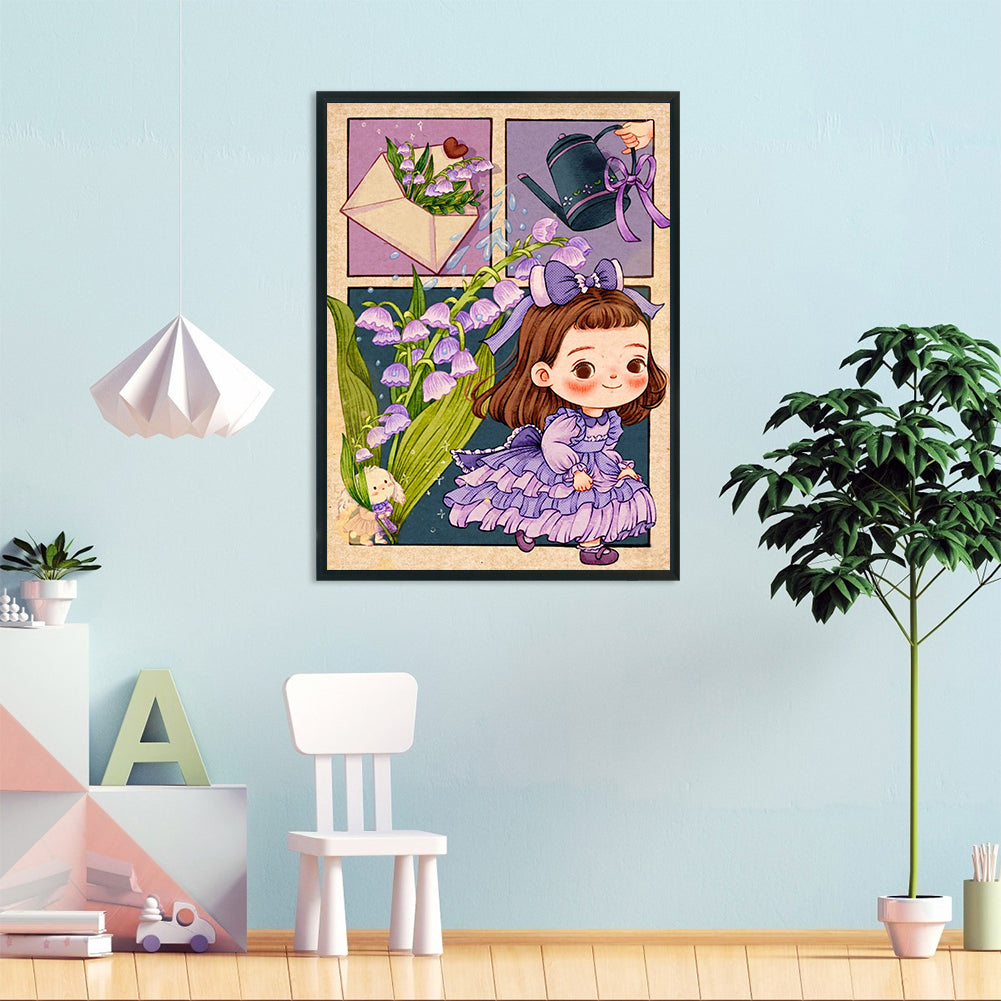 Yishu - Little Girl With Ancient Bellflower - 40*56CM 11CT 3 Stamped Cross Stitch