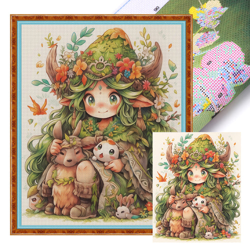 Yishu - Gnome Girl - 45*55CM 11CT 3 Stamped Cross Stitch