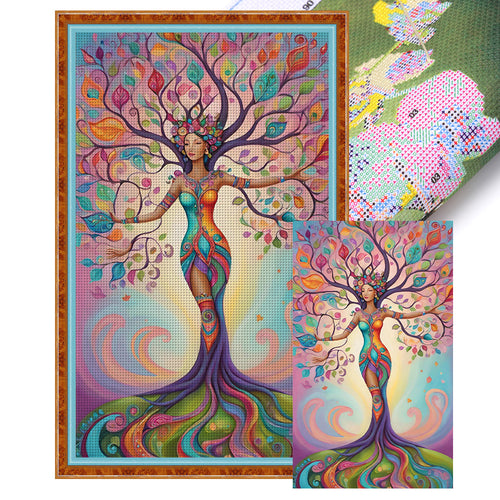 Huancan - Tree Woman - 40*65CM 14CT 2 Stamped Cross Stitch